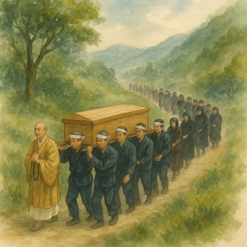 親戚・地域の人たちが集まり、ゆっくりと山に